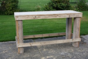 Tafel (100b*250L*78h) met Blokpoten € 295,- (Op foto klikken voor meer voorbeelden) | | Barttafel 200l*80b*110h € 250,- (Op foto klikken voor meer voorbeelden) |
